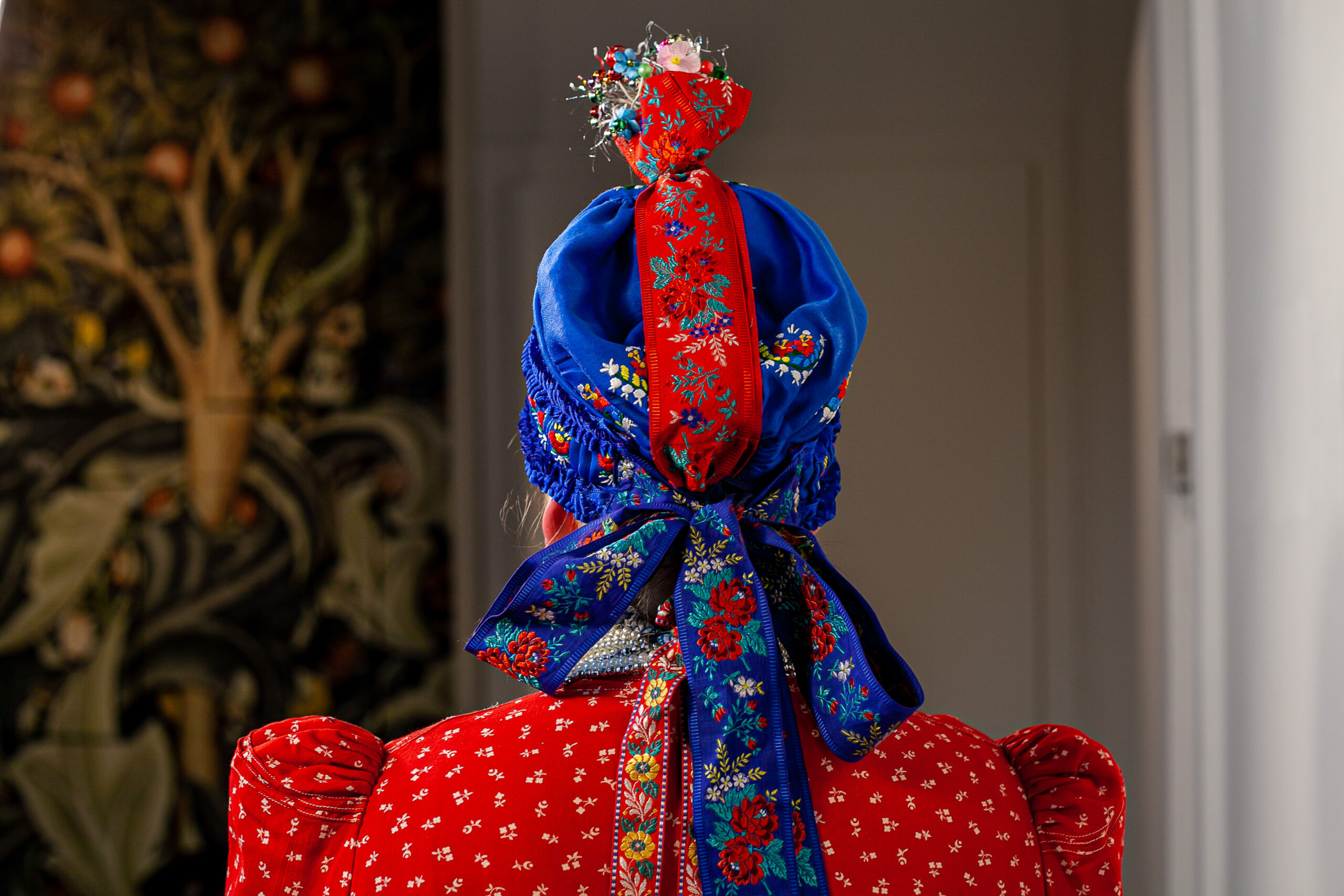 E fejviselet egyik legszebb és legkülönlegesebb alkotórésze még a főkötőre párta-szerűen rákötött, hímzéssel és szalagfodrokkal díszített kakatur.