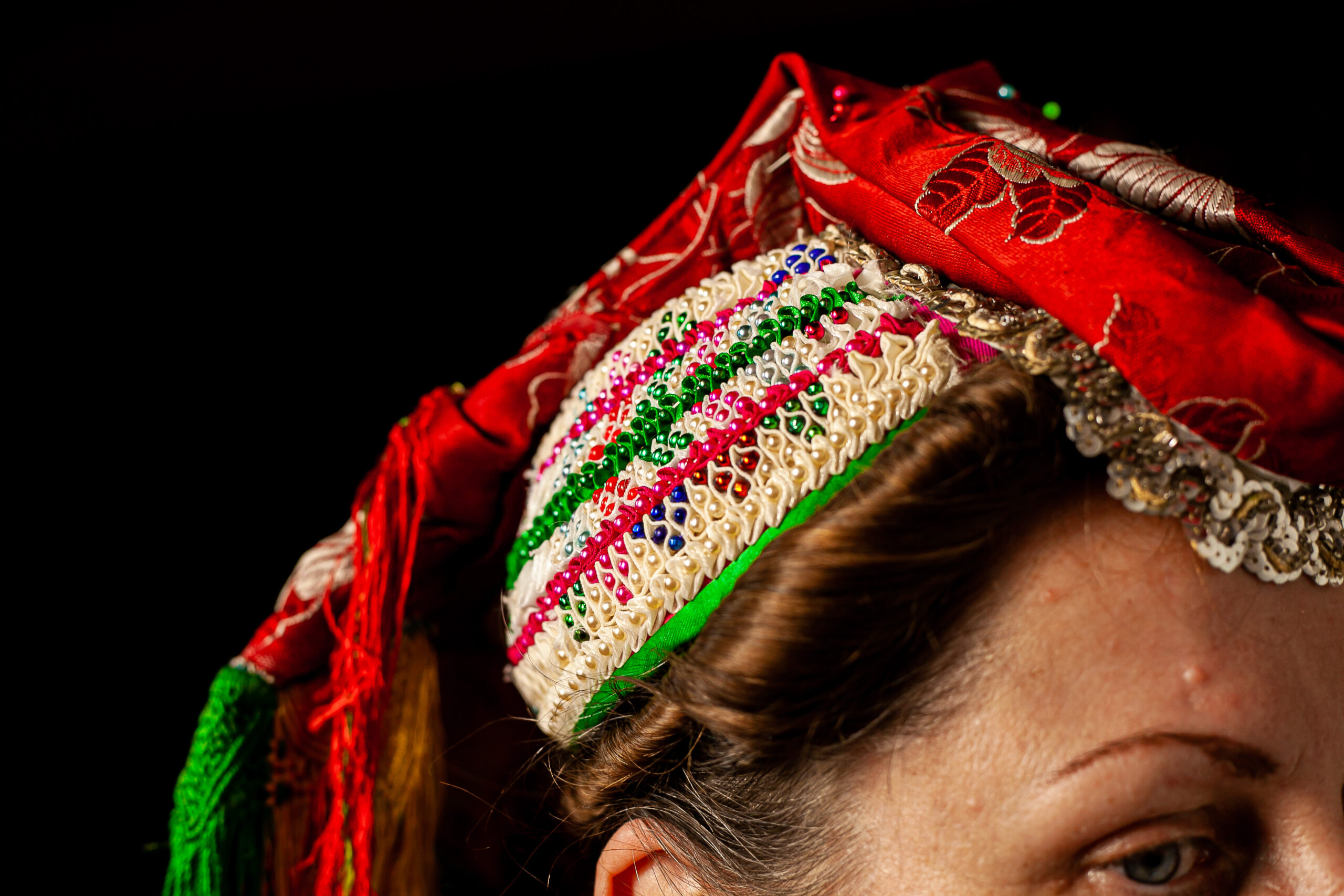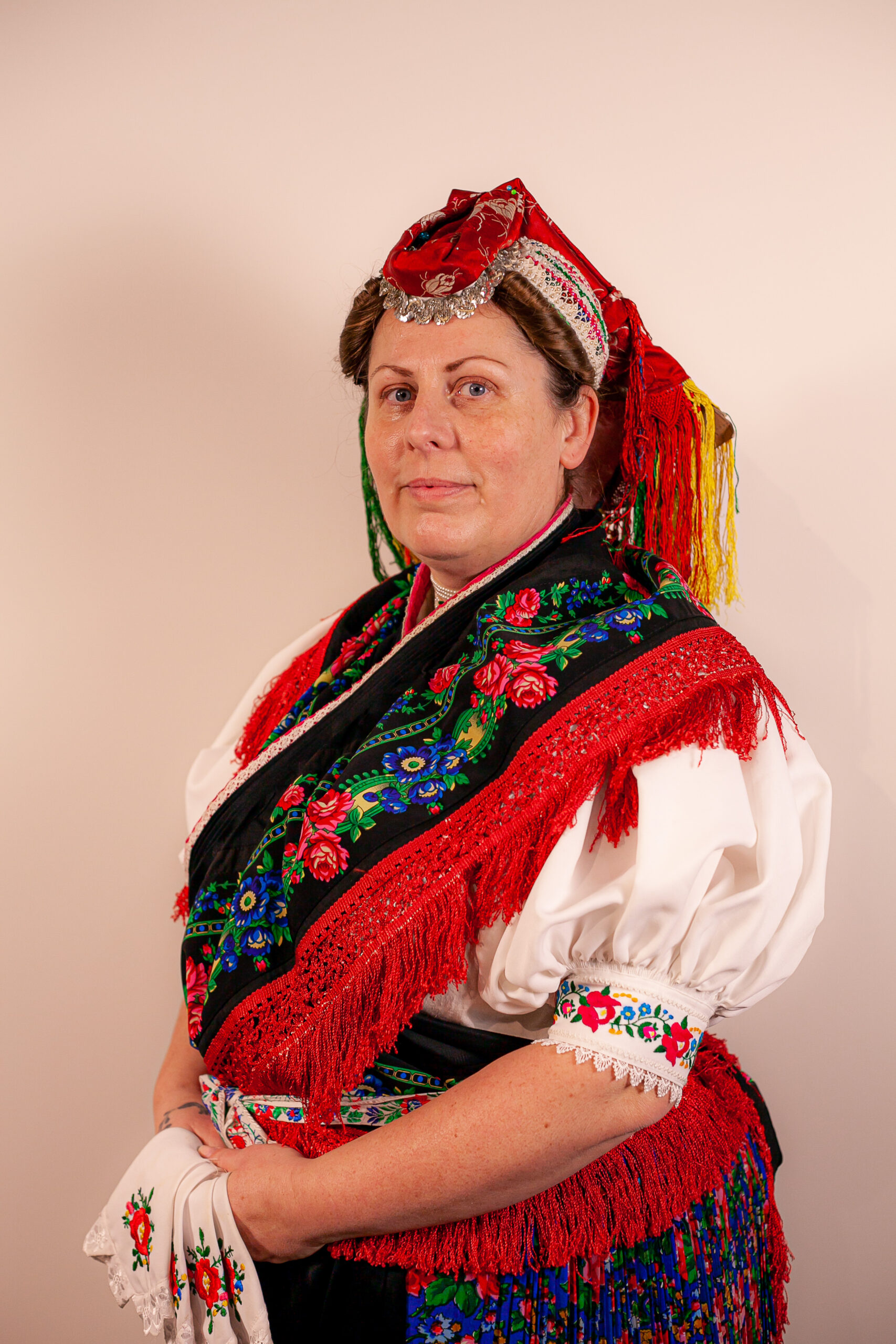 A menyecske két részből áll: egy, a kontyra helyezett, színes gyöngyökkel díszített, sapkaszerű féketőből, és az erre kontytűkkel erősített, adott formára hajtogatott kendőből.